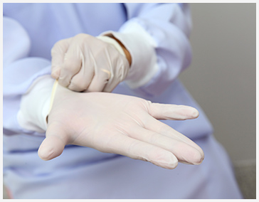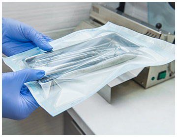 患者さまに安心して治療を受けていただくために、当院では徹底した衛生管理を行っております。治療に使用する器具類はすべて高圧蒸気滅菌器による滅菌処理を施し、滅菌パックで清潔に保管しています。また、使い捨て製品の活用や、口腔外バキュームの導入により、安全でクリーンな環境保持に努めております。