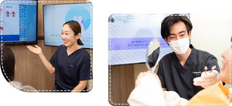 当院は、幅広いニーズにお応えするために、さまざまな専門分野に精通した歯科医師が連携して診療を行っております。小児歯科や矯正治療、審美・セラミック治療、ホワイトニング、入れ歯など、歯やお口に関する症状全般に対応可能です。チーム一丸となり、患者さまに合わせた歯科治療をご提案いたします。