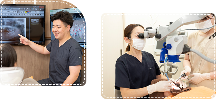 歯科用CTやマイクロスコープ、口腔内スキャナーなどの先端設備を使うことで、肉眼では見えない細部の異変も見逃すことなく、的確に治療いたします。