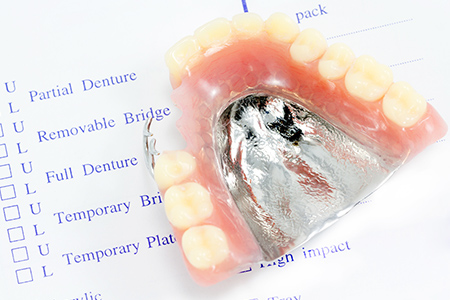 歯ぐきと接する床(しょう)の部分を、レジンと呼ばれる歯科用の樹脂で作る保険診療の入れ歯です。総入れ歯、部分入れ歯の両方に対応でき、修理しやすく、幅広いケースに対応できるのが特徴です。ただし、床に厚みがあるため、違和感を訴えるかたもおられます。