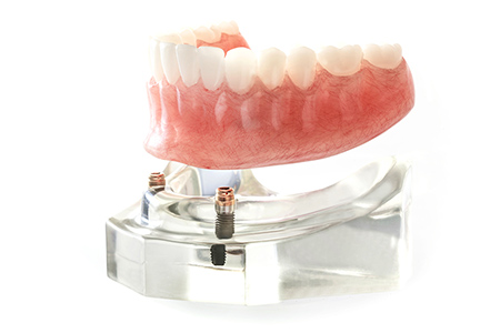顎の骨に埋め込んだインプラントに入れ歯を装着して固定する治療法です。インプラントが土台になっているため、ズレやガタつきのない安定した噛み心地が得られます。総入れ歯、部分入れ歯の両方に対応でき、お使いの入れ歯を流用できる場合もあります。