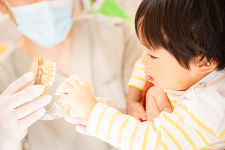 効果的な方法で毎日歯をみがくことは、むし歯を予防するだけなく、お口の健康な発育や歯を大事にする気持ちを育むことにも役立ちます。当院では、お子さまのお口の状態や発達に合わせて、より効果的な歯みがきの仕方をわかりやすくレクチャーいたします。