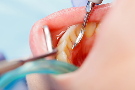 スケーリングとルートプレーニングと呼ばれる処置を組み合わせた歯周病の基本治療です。スケーリングよりも歯周ポケットのより深いところにまでアプローチして、歯の根っこ近くに溜まった汚れを取り除きます。スケーリング同様、クリーニング後は表面をツルツルに仕上げます。