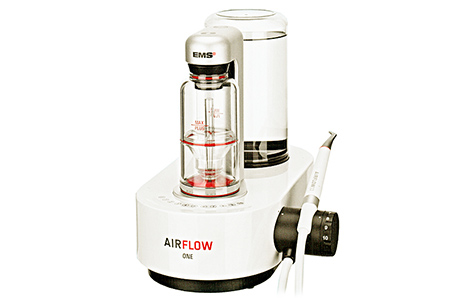 専用の微粉末パウダーをジェット水流で歯に吹きつける装置がエアフローです。歯垢(プラーク)や歯石だけでなく、バイオフィルムと呼ばれる細菌の塊、着色汚れなどもきれいにでき、爽快感のある使い心地もメリットです。歯の表面に細かい傷がつきにくく、歯に優しいケアと言えます。