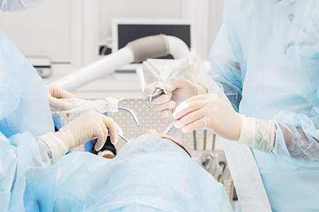 歯周病が進行すると、SRPなどの基本治療では症状の改善が見込めない場合があります。悪化すると、歯を支える骨が溶かされて歯が抜けてしまうリスクがあるため、外科処置の適応を検討します。歯ぐきを切開して、歯周ポケットの奥深くについている歯垢(プラーク)や歯石をきれいに除去します。