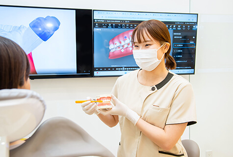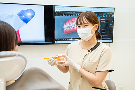 お口の健康を守るためには、効果的な方法によるブラッシングが欠かせません。歯科衛生士が、患者さんのお口の状態やみがきかたの癖なども考えて、適したブラッシング法をご案内します。