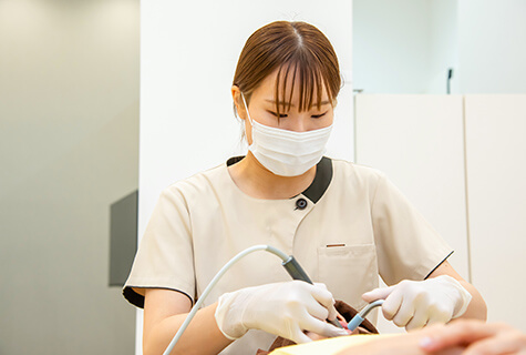 予防ケアの中心的役割を果たすのが歯科衛生士です。当院には、確かな知識と技術、豊富な経験を持つ歯科衛生士が在籍しています。さらに、決まった衛生士が継続して診療を提供する担当制を採用しており、一人ひとりの患者さまに寄り添ったきめ細かなケアの提供が可能です。歯やお口に関するお悩みなども遠慮なくお尋ねください。