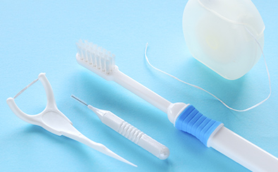 ブラッシングだけでは汚れを十分には落とせません。デンタルフロスや歯間ブラシなどの補助清掃用具も使って、徹底的にきれいにしましょう。